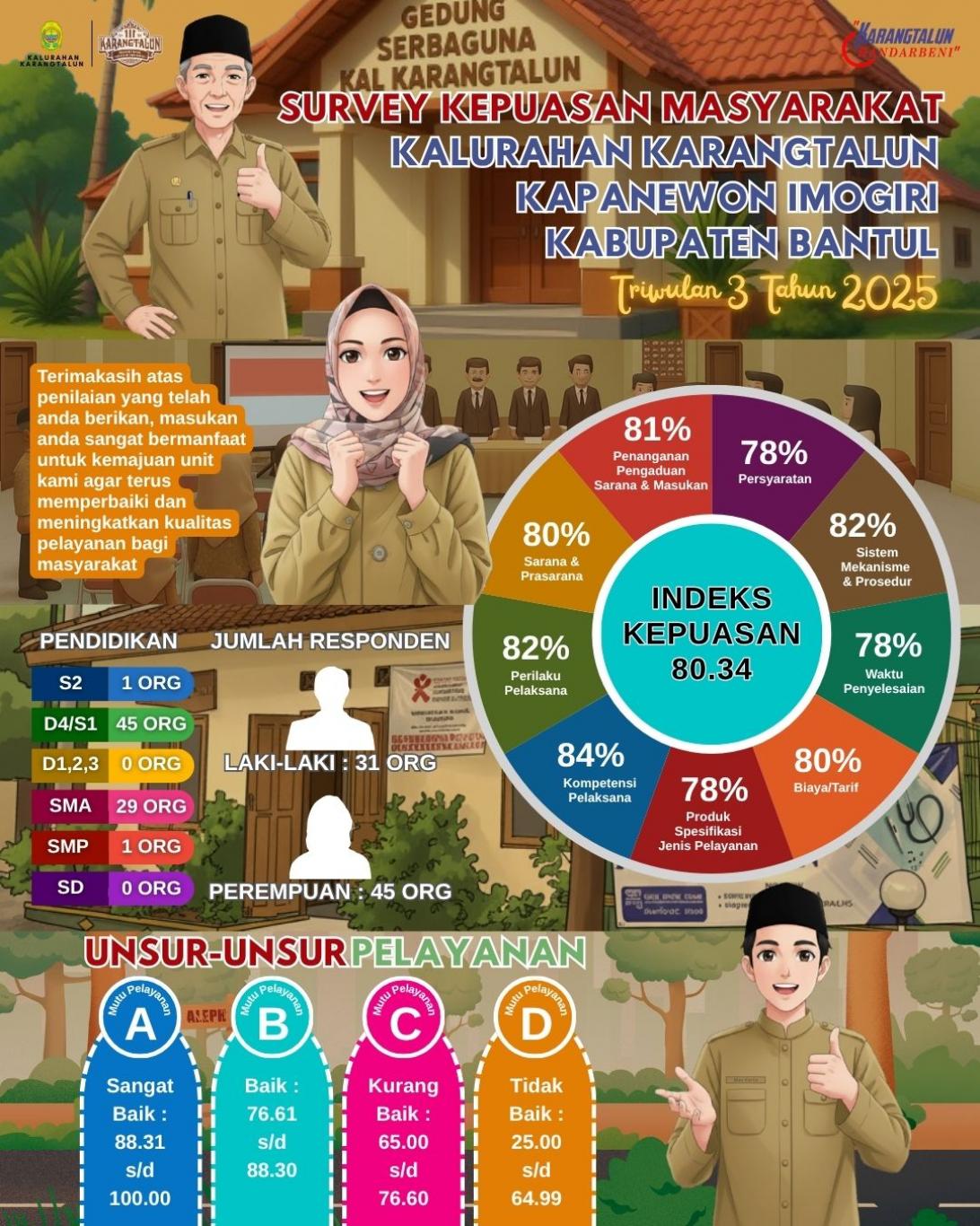 Kami ucapkan terima kasih yang sebesar-besarnya kepada warga Kalurahan Karangtalun yang telah meluangkan waktu mengikuti Survei Kepuasan Masyarakat (SKM).