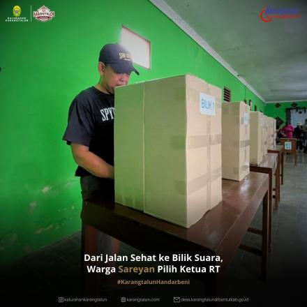 Pemilihan Ketua RT di sejumlah padukuhan wilayah Kalurahan Karangtalun mulai digelar hamper secara bersamaan sebagai bagian dari penguatan demokrasi di tingkat paling dasar. Salah satu kegiatan berlangsung di Padukuhan Sareyan Rt.03 dan Rt.04, yang diawali dengan kegiatan jalan sehat warga sebagai pembuka rangkaian pemilihan Ketua RT. Kegiatan ini dihadiri langsung oleh Lurah Kalurahan Karangtalun, Suharjo, yang menyapa dan berbaur bersama warga sejak pagi hari.